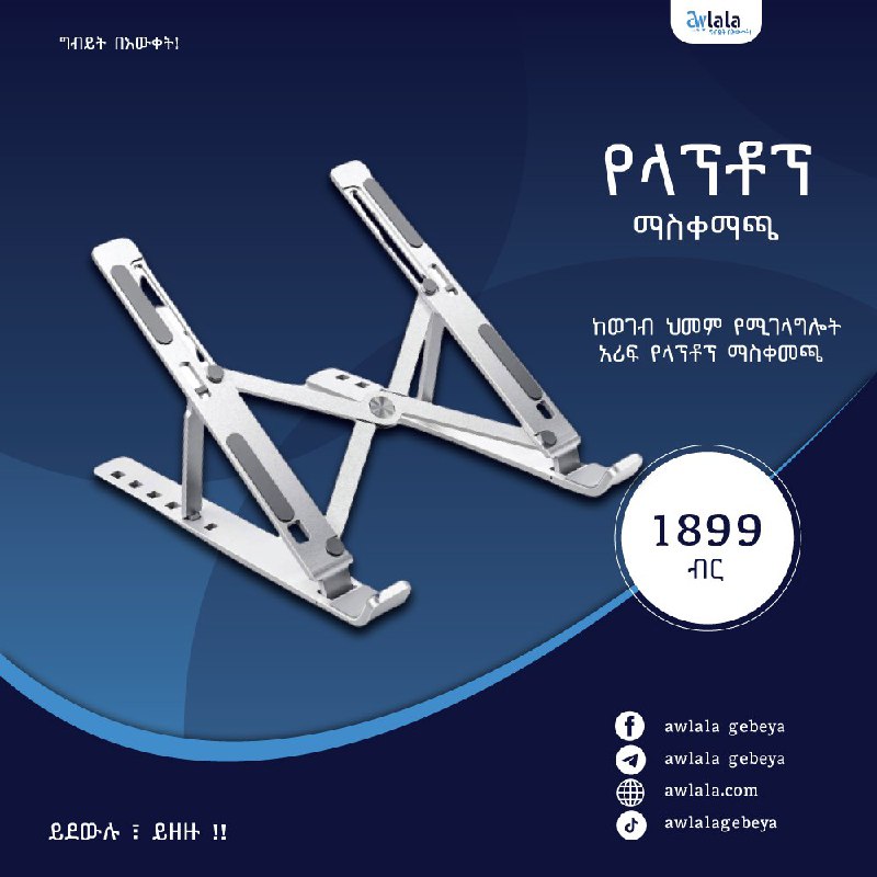 2 years ago✅ከወገብ ህመም ይገላገሉ ። አሁን አሁን ላፕቶፕ ላይ በስራ ረዥም ጊዜ እናሳልፋለን ታዲያ አቀማመጣችን በተስተካከለ ሁኔታ ካልሆነ ለጤናችን አስጊ ነው። ✅ከዚህ ስጋት የሚገላግል የላፕቶፕ ማስቀመጫ እነሆ እንደፈለጉ አጀስት አድርገው ይጠቀሙበታል ✅ተቀምጠውም ሆነ ቆመው ሲሰሩ እንደፍላጎትዎ ላፕቶፖዎን አስተካክለው ያስቀምጣሉ ✅የላፕቶፕ ፋን በበቂ ሁኔታ ቬንትሌት እንዲያደርግ ይረዳል ጠንካራ እና ለአጠቃቀም ቀላል ነው ይደውሉልን። ይደውሉ ይዘዙ! 📞0908777774 💸1899 br