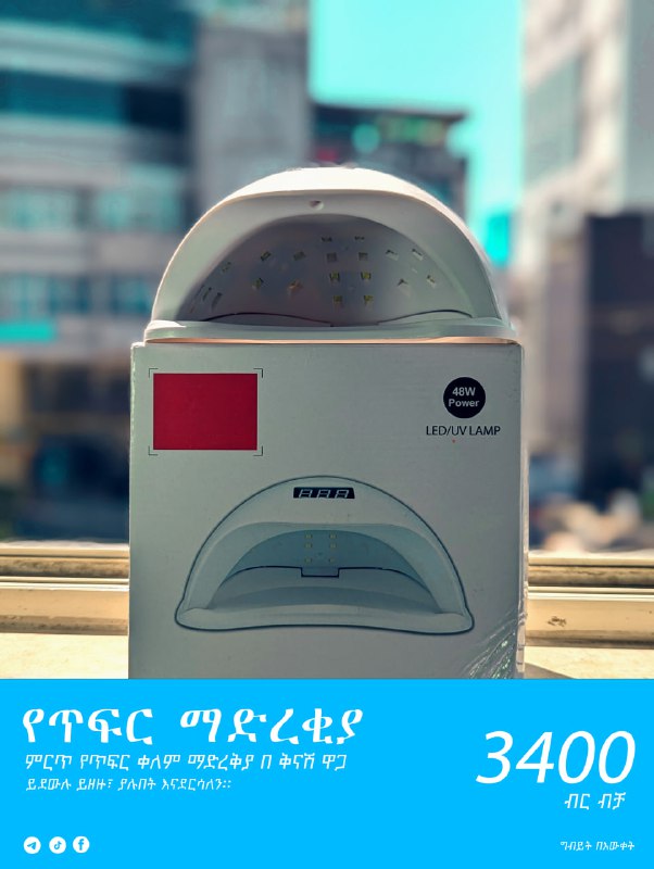 2 years agoውብ የጥፍር ቀለማትና ዲዛይን ያስዋብሽው ጥፍርሽን ለማድረቅ ሁነኛ መላ ከአውላላ ገበያ። ✅በቤት ውስጥ አልያም በውበት ሳሎን በቀላሉ የምንጠቀምበት። ✅የሚያመነጨው አነስተኛ ሙቀት ጥፍርሽን ከመቃጠል መታደጉ ብቻ ሳይሆን ዲዛይኑንና ቀለማቱን ፍክት ድምቅ እምር ስለሚያደርጋቸው የጣትሽን ውበት ያጐላዋል። ✅ለአይን ማራኪ በሆኑ 6 ቀለማት የተዘጋጀውን ለአጠቃቀም ቀላልና ምቹ የሆነውን የጥፍር ማድረጊያ የራስሽ አድርጊው። ___________________________________ ይወደውሉልን ደጅዎ ድረስ በነፃ እናደርሳለን። 📞0908777774 💵3400 ብር ብቻ